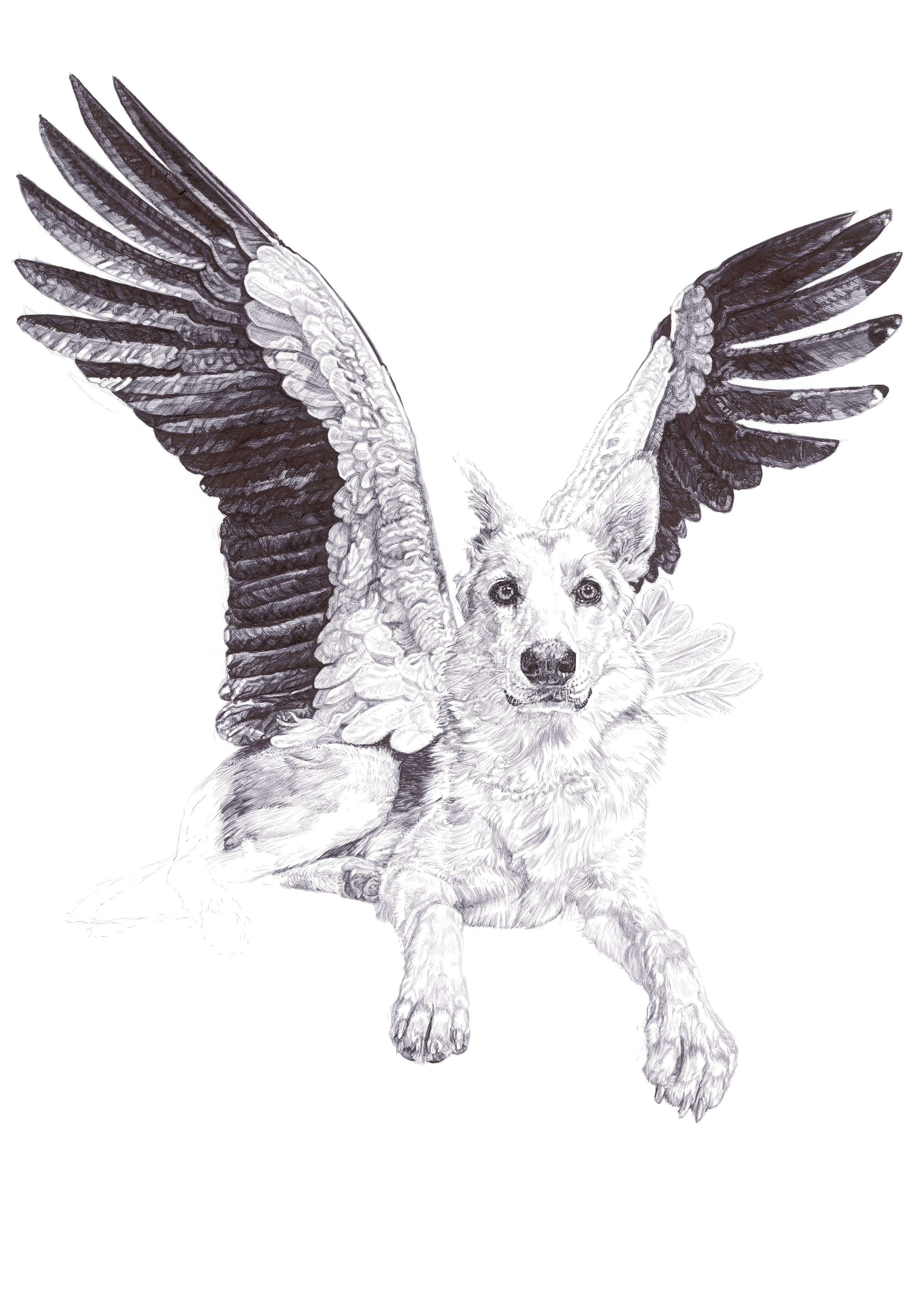 "'Sweet', Wolves, In Homage to the Last Great Carnivores of Eurasia", 2013, Archival Pigment Print from original black Biro drawing