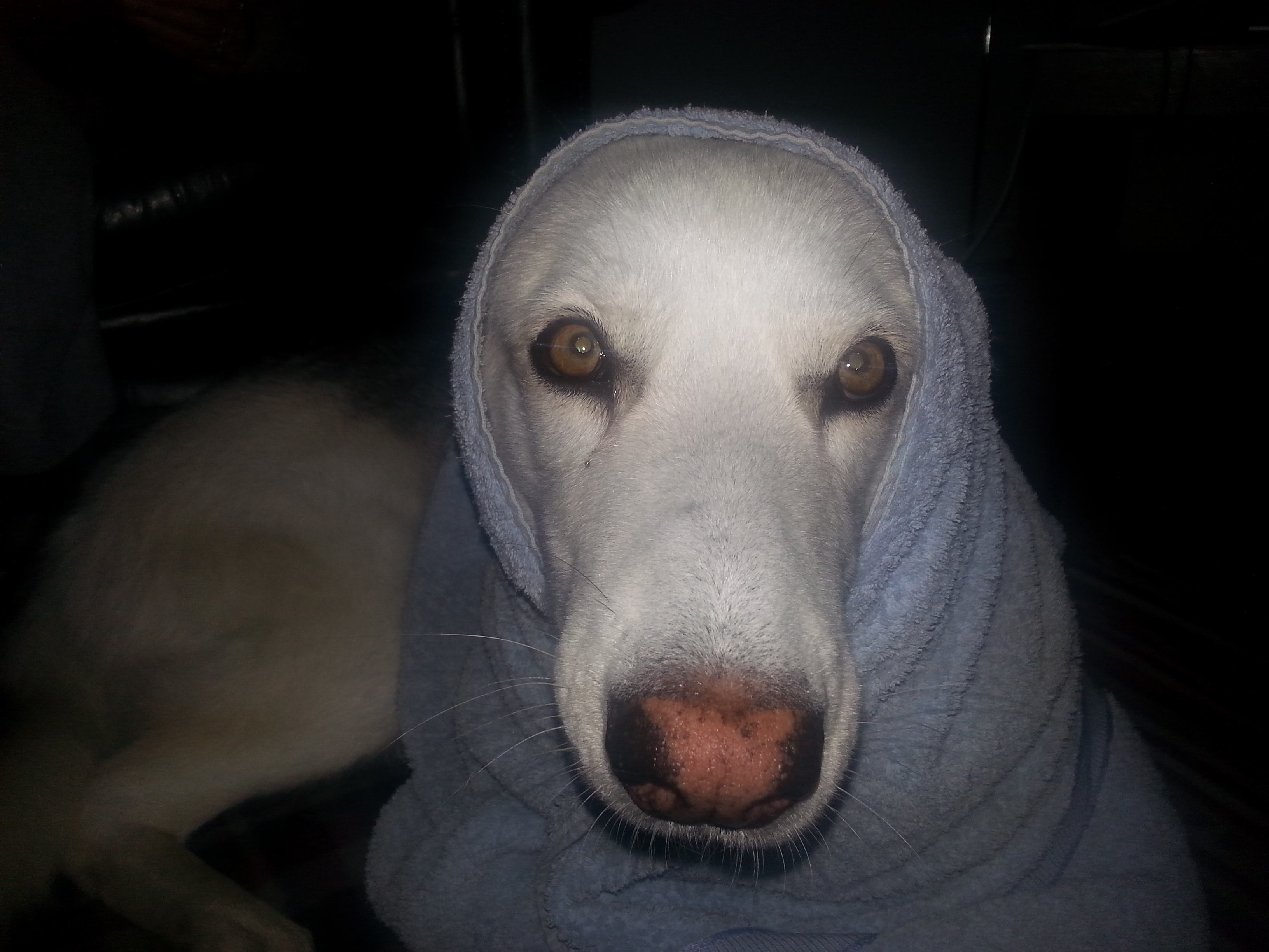 20130906_215602 (1)March –  “Early rehearsals began for this year’s nativity! (I put my ears back when I’m happy so could wear Mary’s headscarf with ease)”
