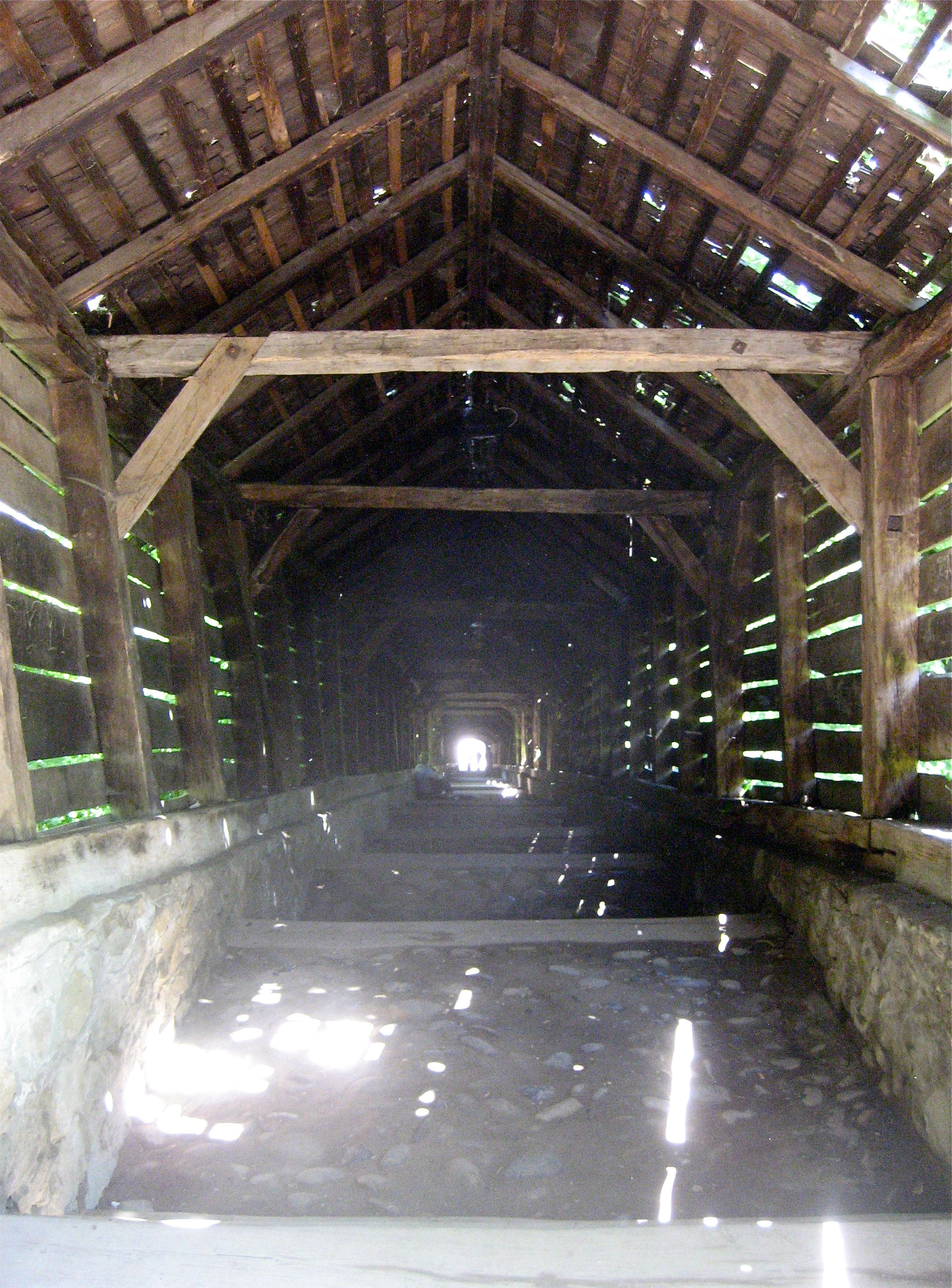 ‘We put up at an inn with gables and leaded windows in a square lifted high above the roofs and the triple cincture of the town wall and dined at a heavy oak table in the Gastzimmer.  The glasses held a cool local wine that washed down trout caught that afternoon, and every sight and sound – the voices, the wine-glasses, the stone mugs and the furniture shining with the polish of a couple of centuries – brought it closer to a Weinstube by the Rhine or the Necker.  When István retired, Angéla and I sat on in the great smokey room holding hands, deeply aware that it was the last night but one of our journey.  There are times when hours are more precious than diamonds.  The gable-windows upstairs surveyed a vision of unreality.  The moon had triumphed over the mute fireworks to the east and the north and all the dimensions had been re-shuffled.  We lent on the sill, and when Angéla turned her head, her face was bisected for a moment, one half silver, the other caught by the gold glow of lamplight indoors.’ (“Between the Woods and the Water”, p 154)