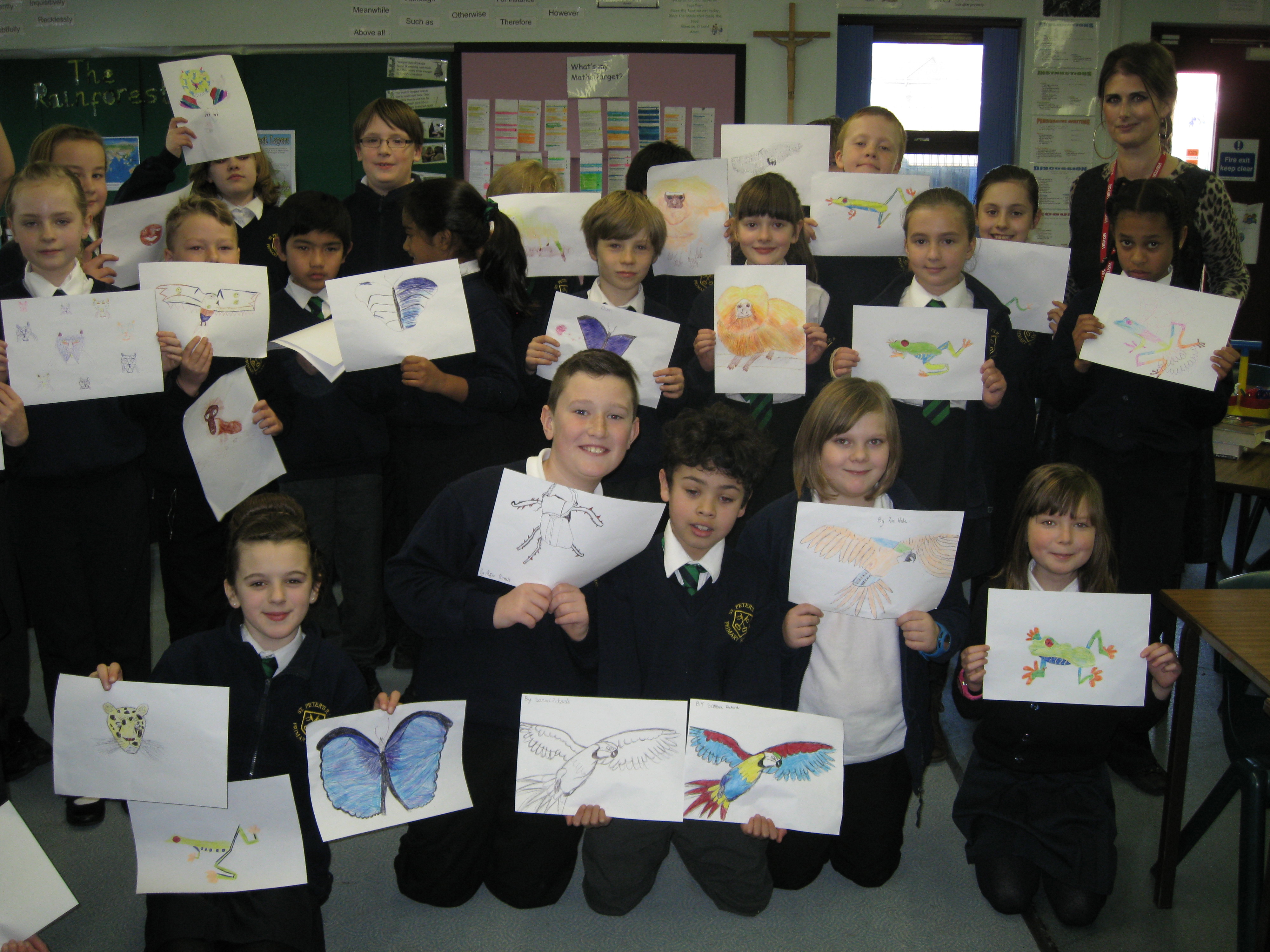 Year 5, St Peter's Roman Catholic School, Scarborough with their artwork produced during 'Drawing for Endangered Species' workshop
