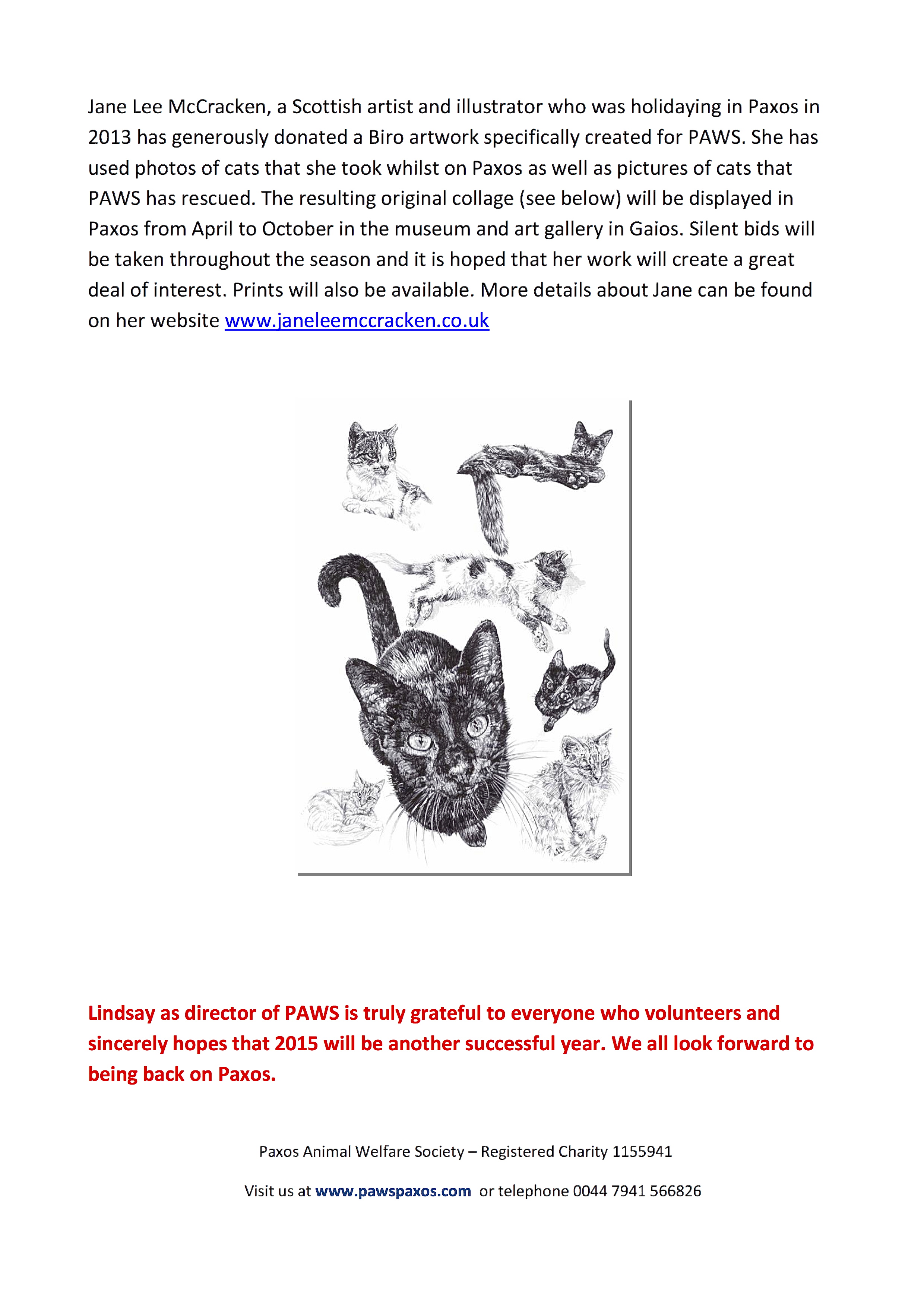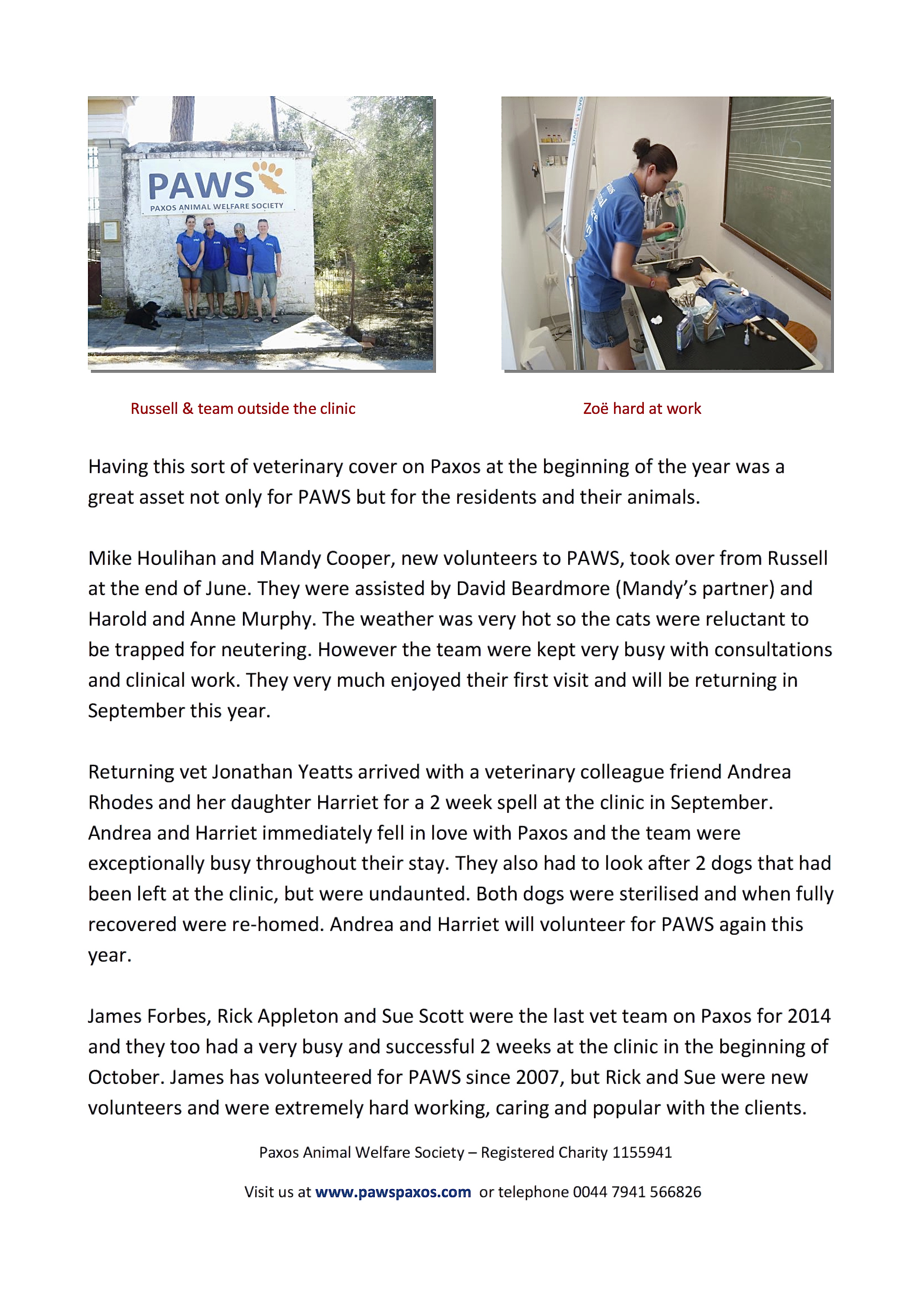 January has seen the publication of PAWS (Paxos Animal Welfare Society) Newsletter and a review of 2014’s successes for animals on the Greek island of Paxos.  PAWS brings voluntary veterinary care to the animals of the small Ionian island. With no practicing vets living on Paxos, islanders had to travel to Corfu to seek veterinary care for their animals until PAWS was founded in 2005 by tourists Lindsay Geddes and Linda Parker.